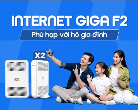 Gói Internet lý tưởng cho cá nhân và hộ gia đình nhỏ! Internet Giga F2 mang đến tốc độ cao, kết nối ổn định đi kèm với Modem Wi-Fi 6 và 2 Access Point. Làm việc, học tập, giải trí online mượt mà hơn bao giờ hết. Miễn phí 1 tháng cước khi đăng ký gói 12 tháng.